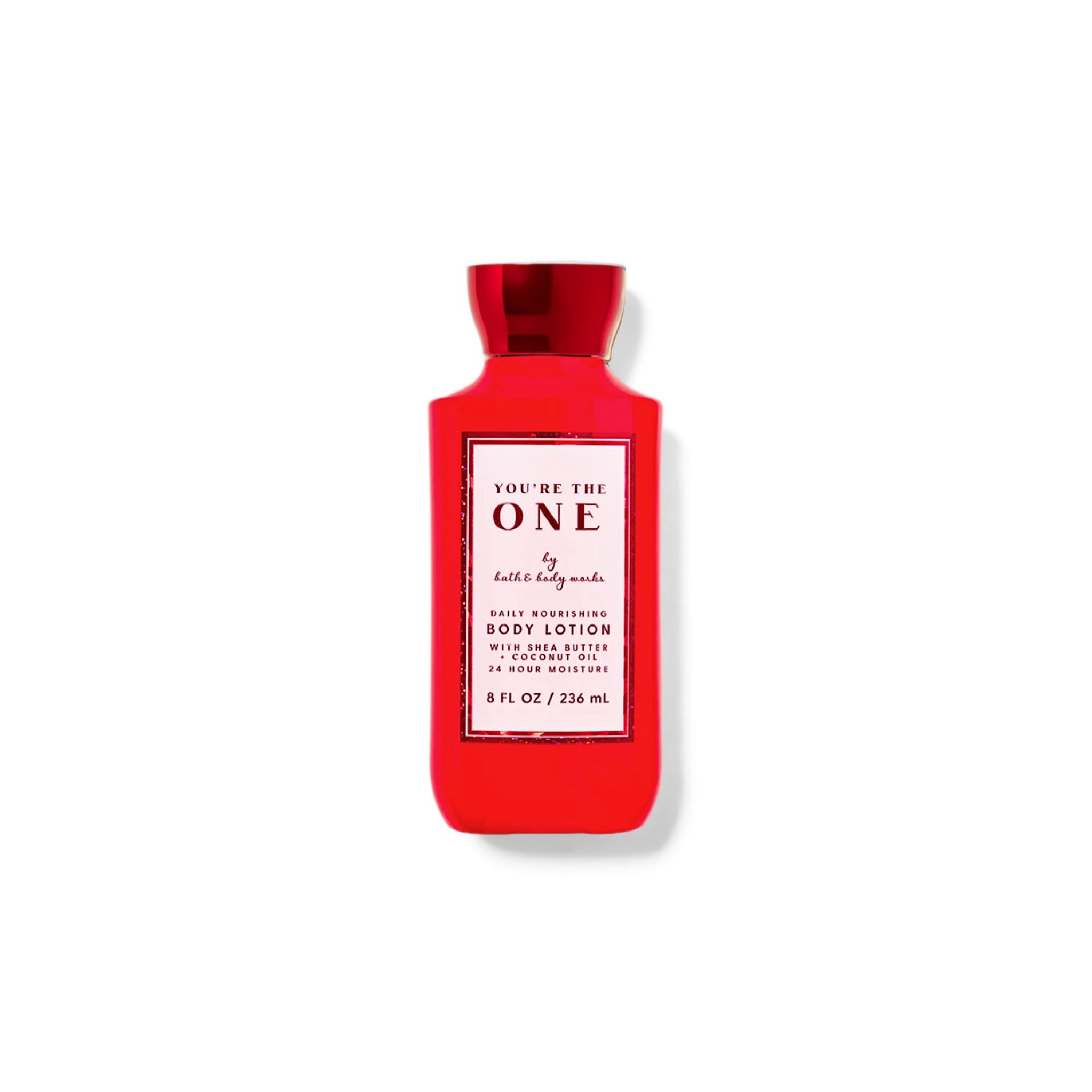 لوسیون بدن You’re The One از برند Bath & Body Works با رایحه‌ای شیرین، گلی و ملایم، پوست را نرم، مرطوب و خوشبو می‌کند. این محصول با فرمولی سبک و مغذی، پوست را در طول روز تغذیه کرده و لطافت و نرمی آن را حفظ می‌کند. ترکیب رایحه گل‌های تازه و میوه‌های ملایم، عطری زنانه و دلنشین روی پوست باقی می‌گذارد و برای استفاده روزانه بسیار مناسب است.